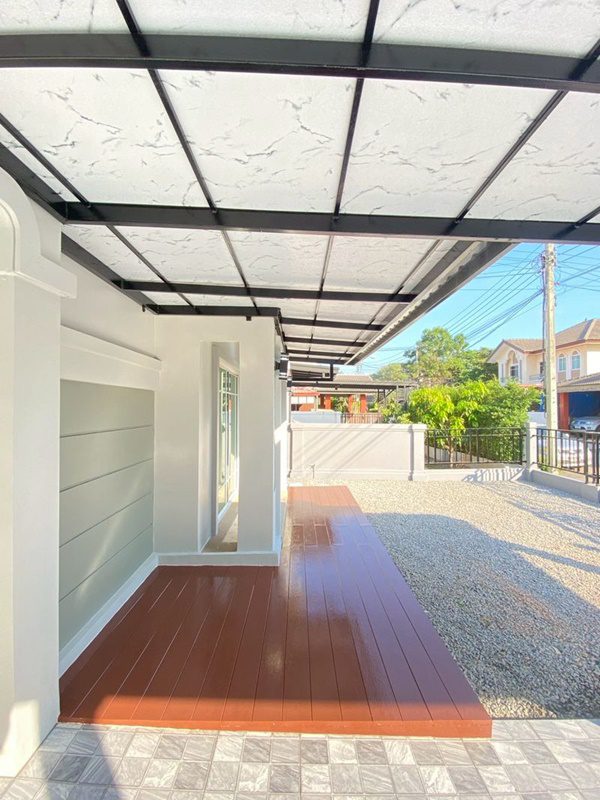🔥 ต่อเติมหลังคาจอดรถ พร้อมปูกระเบื้องลานจอดรถใหม่ ชานพักด้านหน้าสไตล์คลาสสิก เพิ่มพื้นที่อเนกประสงค์ ,โซนซักล้างด้านหลังกว้างขวาง รีโนเวทใหม่ทั้งหลัง