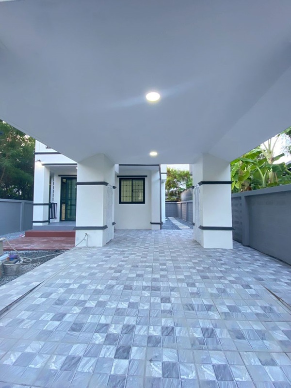 👉 รีโนเวทใหม่ ต่อเติมหลังคาจอดรถ ,เคาเตอร์ครัว ,ชานพักเอนกประสงค์ด้านหลัง ลานจอดรถปูกระเบื้องใหม่ ทาสีใหม่หมดทั้งหลัง
